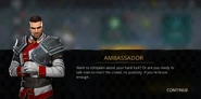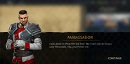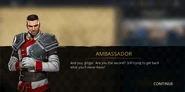 The Ambassador, disappointed by the player's victory, orders them to obtain their reward from the paymaster and leave. Hearing this, Scout states that he is glad about the reward's mention. They all have gathered like old friends who do not keep secrets amongst each other and everyone would like to know about the Ambassador's daily business and enemies made. Offended, the Ambassador challenges the duo for a man-to-man talk outside the public vision.