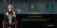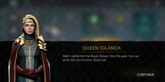 Queen Iolanda arrives at the arena and reprimands the pair about discipline as she was informed that people were fighting outside the tournament. Scout defends by saying that someone insulted his kin and was trying to get rid of him. He introduces himself as Alexander Home, the son of a former earl who was stripped of his title and wonders if she remembered the earl. Queen Iolanda clarifies that she remembers the hundred noble names by heart, especially the Home family very well as the name is engraved on the throne. The reason being one of Scout's Ancestor was buried in the Fortress wall. She then names the player as the Royal Chosen One of the year as Greta had informed her of their prowess, hence allowing them to fight in the Tournament and wishes them luck.