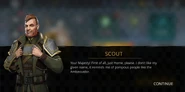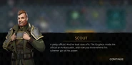 The Ambassador is furious that the matter escalated to this level. Thus he orders the real professionals to engage Scout and the player. Scout is flattered that the Ambassador is now taking this seriously to the extent that even the liquidators have been summoned. Enraged, the Ambassador mocks them as nobody and they would not get any money or apologies from him. Scout scoffs that it was never about it and he promises the player to explain everything if they survived this encounter.