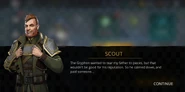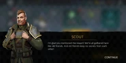 Now in the Tournament, Scout apologizes to the player for not revealing his complete plans in the fear of the player refusing to go along them. Scout reveals that the nobles and their titles do not matter to him but his aim is to restore his family's good name. His main target is the elder - The Greatest Gryphon. He was the one who got Scout's father killed via the Ambassador. Gryphon only fights the winner of the Kings' Tournament. No legionary till date has ever defeated him but Scout has a feeling that the player may stand a chance. The first Noble is the Earl Theodor. He has been tutored by the Night Warriors themselves and is a tough one. He is known famously as the Twilight Guest.